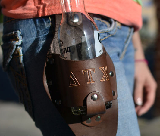 Choose The Athens when you want to show your allegiance to your Fraternity brothers or Sorority sisters by embossing your Greek letters into the basket of your new beer holster. We can even include your name, school name, or pledge class in smaller 1/4″ letters.